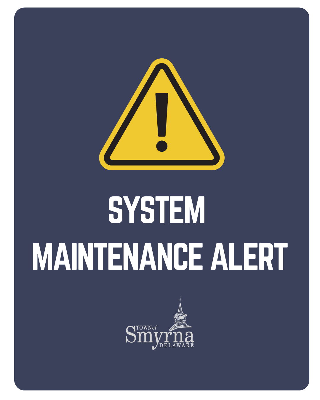 If you need to report a concern while the online system is unavailable, please contact the Public Works Department at 302-653-9231 (Option 1) or use the town Hotline at 302-471-3000 or email WeatherOutages@smyrna.delaware.gov.